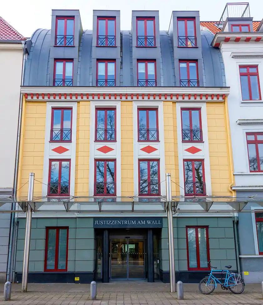 Auf einen Rollstuhl angewiesene Personen können das Justizzentrum am Wall über den Zugang Am Wall 198 befahren.